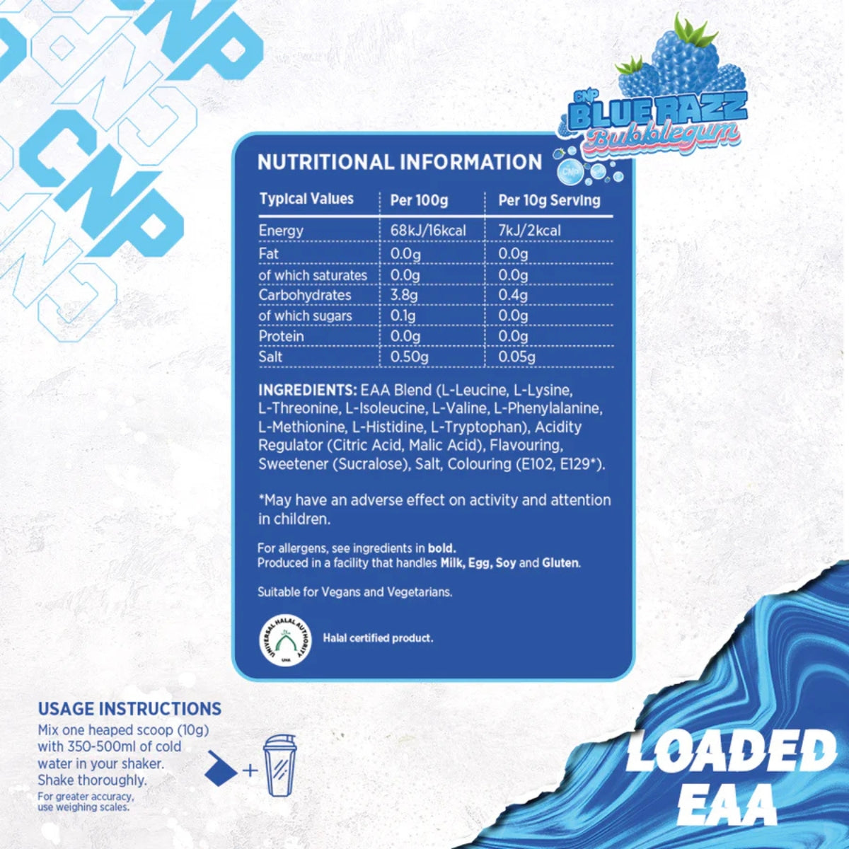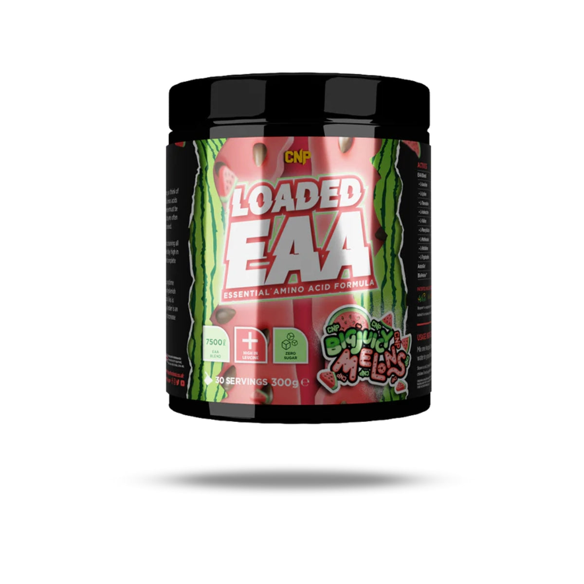 CNP Loaded EAA’s are the perfect combination of a highly functional product and some of the best, thirst quenching sweet inspired flavours on the market. Our premium EAA’s have been formulated to be specifically high in Leucine and to provide you with all the branch chain and essential amino acids (BCAA’s and EAA’s) as part of a premium recovery blend which can be used pre / intra / post workout, or any other time of the day. Being packed with EAA’S, it enhances recovery and performance, allowing it to be a versatile product taken by anyone who takes part in exercise, from hardcore lifters in the gym, CrossFitter’s, strongmen and endurance athletes. Although EAA’s can be acquired from food, there is a real opportunity to maximise intake and therefore recovery by using an EAA supplement, something athletes have been doing for years with great results.