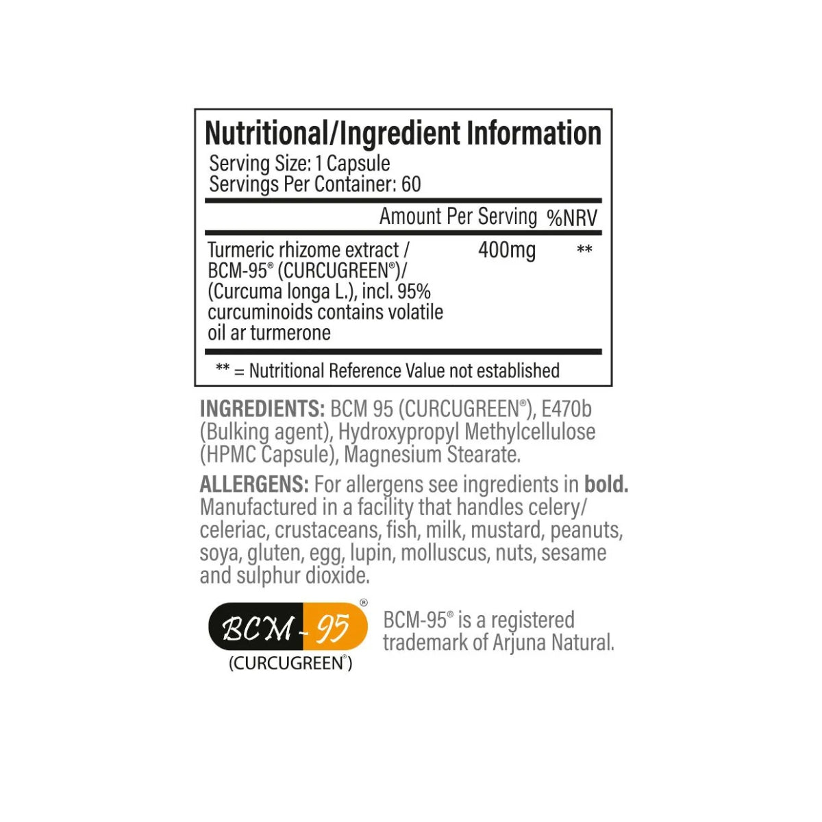 400mg BCM-95® Curcumin per capsule