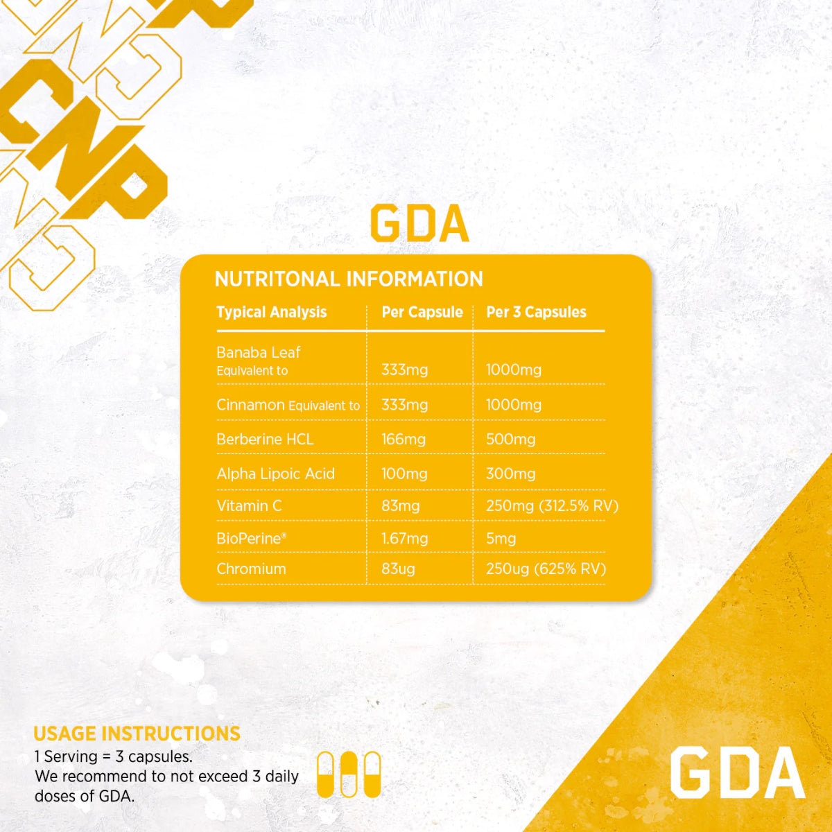 GDA is a premium capsule formulation, created to control glucose levels and support metabolism within the body. GDA contains Berberine HCL alongside Banaba Leaf. These are combined with Chromium, which helps your body control glucose within the body.