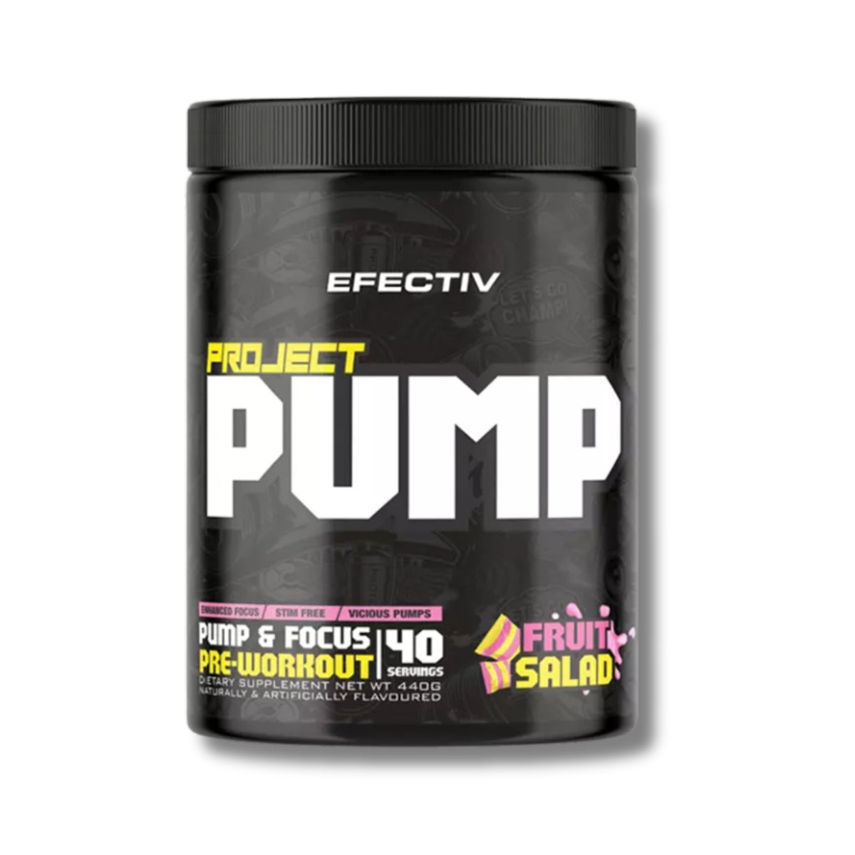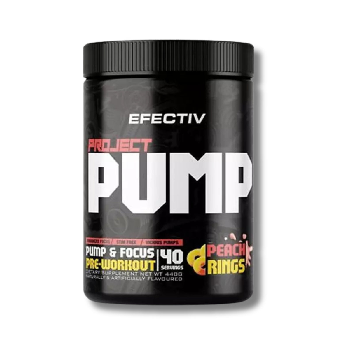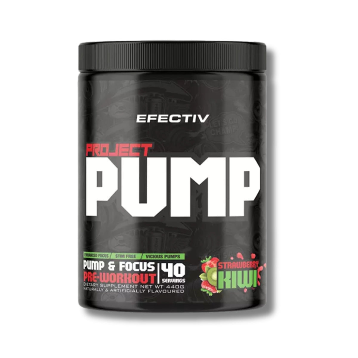 EFECTIV Project Pump is a stimulant free pre-workout designed to support increased blood flow, endurance, cognitive performance, and combat stress during intense training sessions.